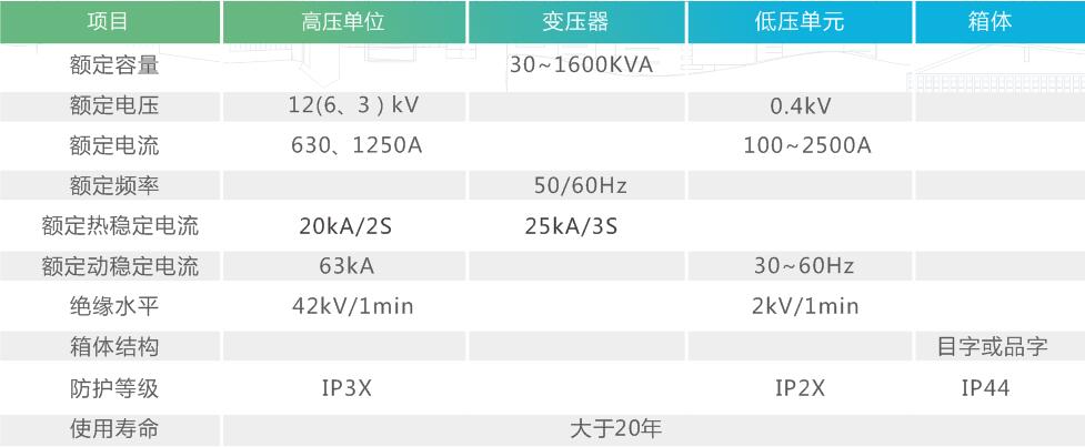 YB□-12型預裝式變電站,用于10kV環網供電、雙電源供電或終端供電系統中,作為變電、配電計量、補償、控制和保護的成套裝置。變電站內除裝有變壓器外,高壓側還裝有三工位(或二工位)負荷開關、后備保護熔斷器及插入式熔斷器;低壓側按用戶要求可裝配控制電器、配電電器、補償裝置及計量表計等。